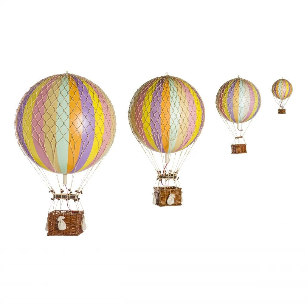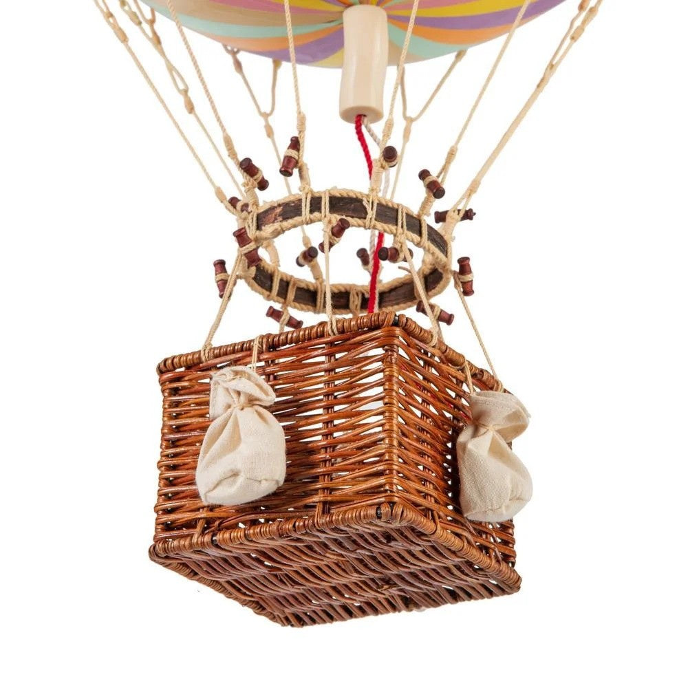 Laat de magie van de luchtballon Jules Verne Rainbow Pastyel je interieur verrijken met een uniek stukje nostalgie en avontuur. Elk detail ademt handwerk en vakmanschap, waardoor deze luchtballon een charmante en inspirerende toevoeging is aan elke ruimte.