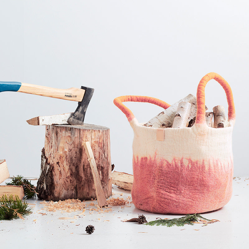 • Knusse mand van 100% wol met stevige handvatten
