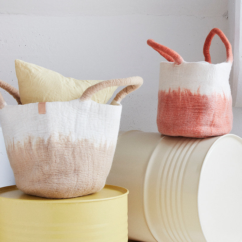 Dompel je onder in warmte en stijl met onze zachte Aveva wollen mand, perfect om de kamer op te fleuren en alledaagse spullen zoals dekens en speelgoed op te bergen.