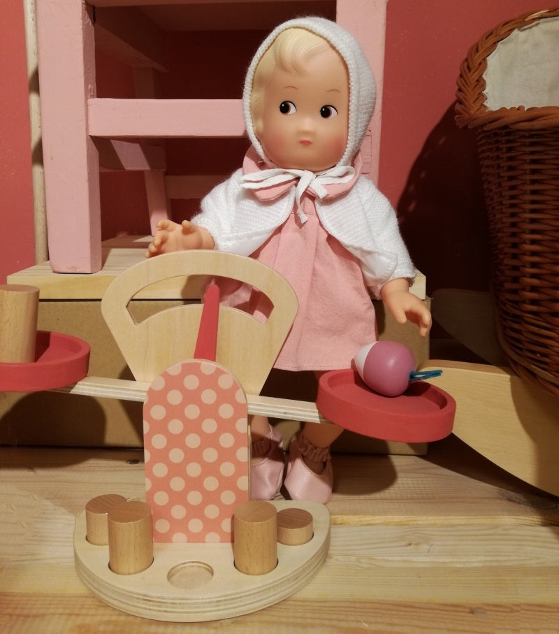 Stap in de betoverende wereld van de mini supermarkt met Emma's houten weegschaal. Laat je verbeelding de vrije loop terwijl je winkeltje speelt en groenten en fruit weegt voor je klanten.