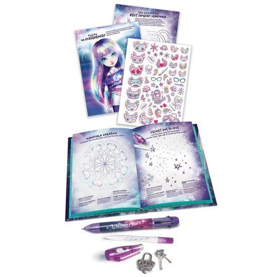 Ontdek de betoverende wereld van Isadora met dit geheime dagboek vol mysterie en avontuur. Een plek waar activiteiten en stickers samenkomen met een geheimschrift pen en kleurpennen, om jouw verhalen en geheimen te bewaren in stijl.