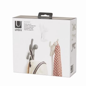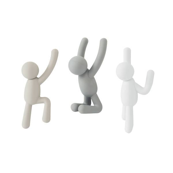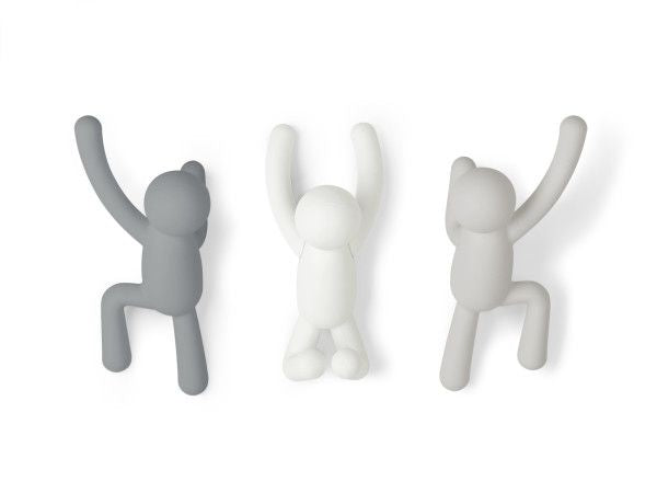 Voeg een speels accent toe aan je interieur met deze kleurrijke Buddy Hooks van Umbra! Dit pakket bevat drie kapstokken in wit, licht- en donkergrijs, die niet alleen functioneel zijn, maar ook zorgen voor een vrolijke sfeer in de kamer. Laat de schattige mannetjes de muur opklimmen met al jouw jassen en tassen, terwijl ze een glimlach op je gezicht toveren.