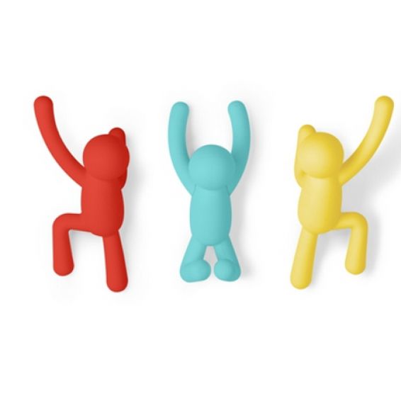 Voeg een speelse touch toe aan je interieur met deze set Buddy Hooks van Umbra! Laat de rode, gele en blauwe kapstokken de muur beklimmen en breng een vrolijke sfeer in de kamer.